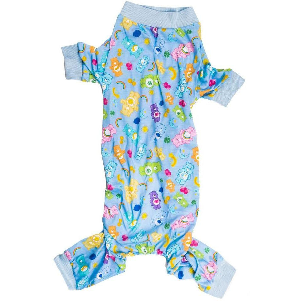What can be better than cuddling in your PJs with the Bedtime Care Bear! Chilly nights have met their match with these Officially Licensed Care Bears x Fresh Pawz collab Dog Pajamas. Introduces a color-pop of classic, iconic Bears sprinkled throughout these super comfy dog Pajamas. With such a bright, fun pattern, you'll also want to wear them out around town!