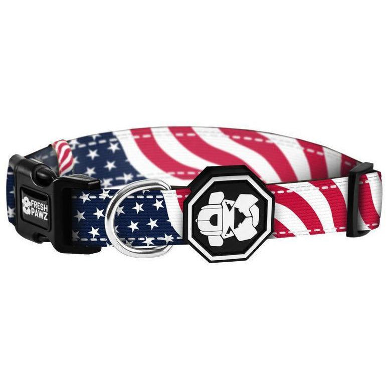 Show your American pride with our own Fresh Pawz collar. Each rendering of our nations great flag comes to life on our signature collar, showcasing each stripe, star and color. As with each Fresh Pawz collar, we provide a matching leash to pair, and more importantly, each uses a neoprene padded material to ensure fast drying and ultra comfort.